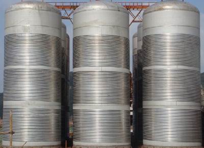 我廠設計的發酵罐為標準式罐型,這種罐型當公稱容積在6M3以下時罐采用夾套式。發酵氣的冷卻或加熱,均由夾套來完成。公稱容積為6M3以上時,發酵氣的冷卻由立式排管來擔負,在罐內排管的連接方面我們作了改進。這主要避免在罐體上多開孔,開成死角。這種連續方式在實際使用中得到滿意的效果。